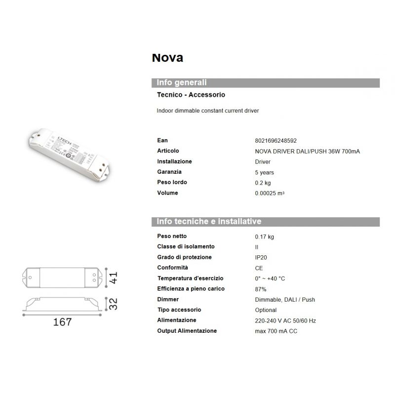 Transformator electric Nova driver Dimmable dali/push 36w 700ma