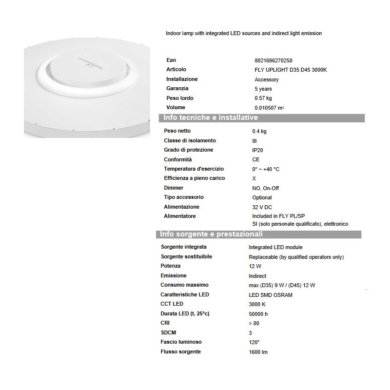 Accesoriu, Lumina LED indirecta pentru lustrele FLY UPLIGHT D35 3000K