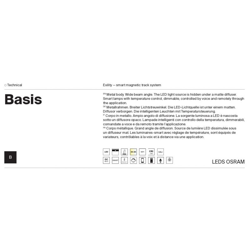 | Informatii produs: | Modul LED Basis Smart, accesoriu pentru sina magnetica Exility. BLUETOOTH CCT temperatura de culoare si intensitatea luminii reglabila prin aplicatie telefon sau telecomanda cod DRC034-B, exclusa din pret. |
