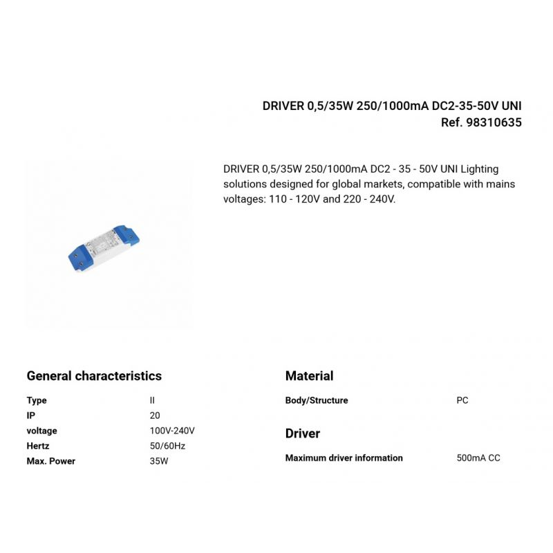 Transformator electric DRIVER 0,5/35W 250/1000mA DC2-35-50V UNI