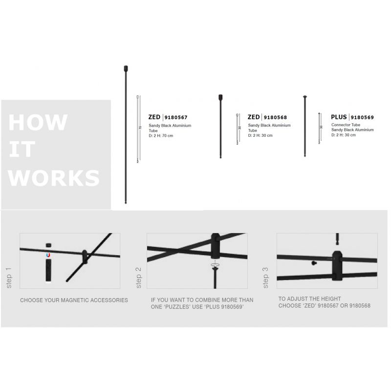 Seria PUZZLE, un set de structuri tubulare compatibile cu a o gamă largă de accesorii magnetice proiectate pentru a fi asamblate în diferite forme si adaptabile la nevoile fiecărui spațiu.