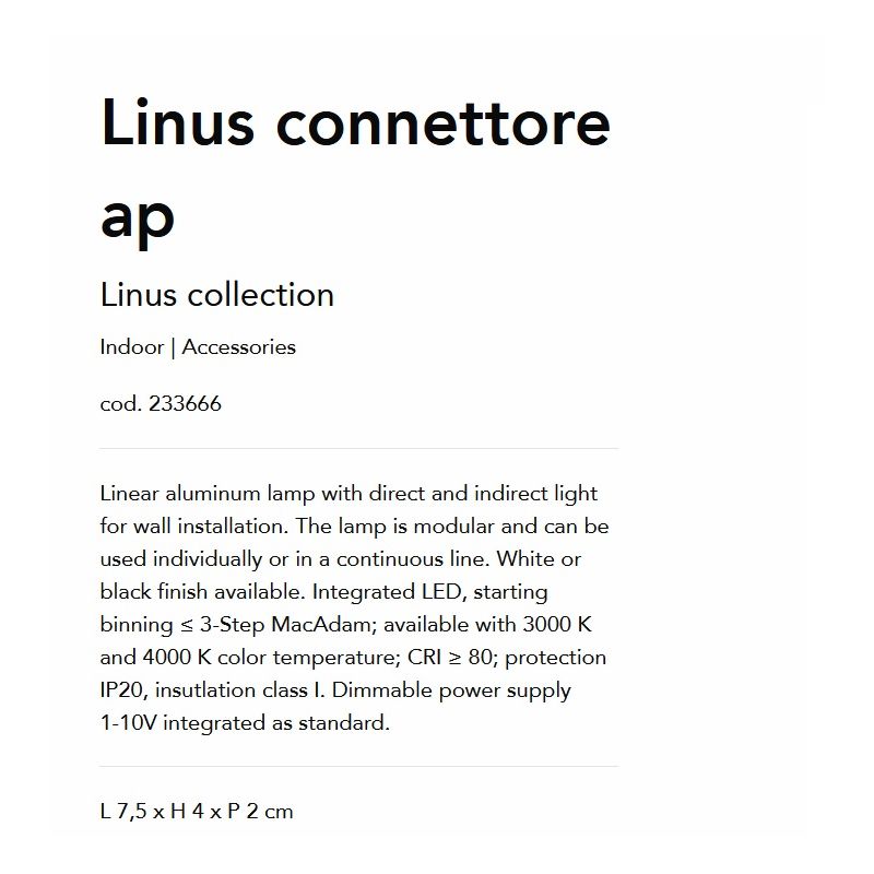 Informatii produs: | conector lampa pentru conectarea modulara a aplicelor liniare LINUS |