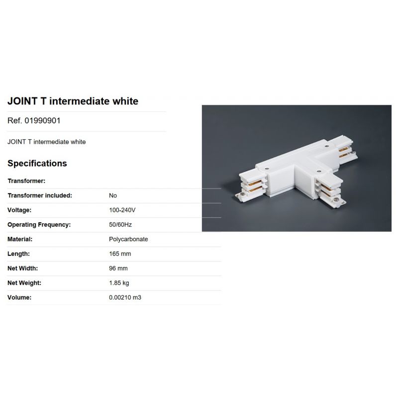 Accesoriu, JOINT RIGHT “T” intermediar alb, electrificat pentru sina Faro 3 PHASE TRACK & DALI TRACK