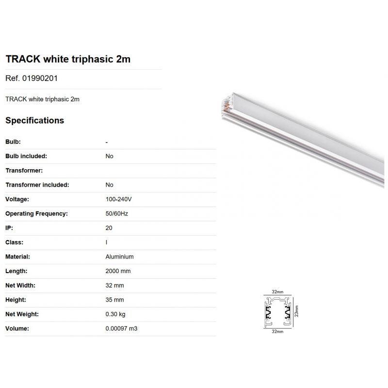 | Informatii produs: | Sina trifazica alba 2 metri, pentru maxim 3 proiectoare 3.8 KVA. Capeti sina, conectori electrificati sau alte accesorii excluse din pret. |
