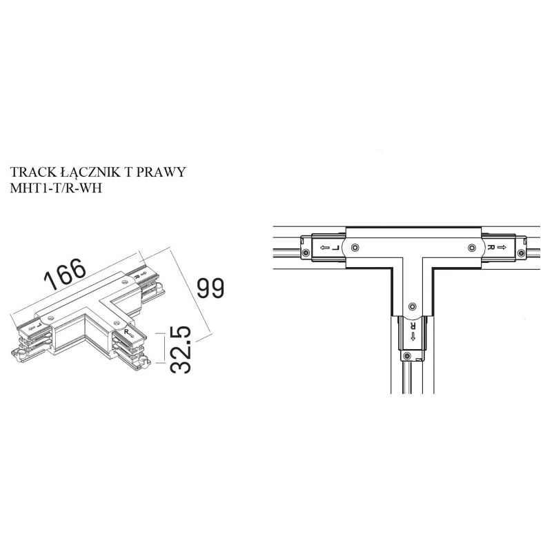 Accesoriu, Conector alb T partea dreapta, pentru sina trifazata MAXLIGHT