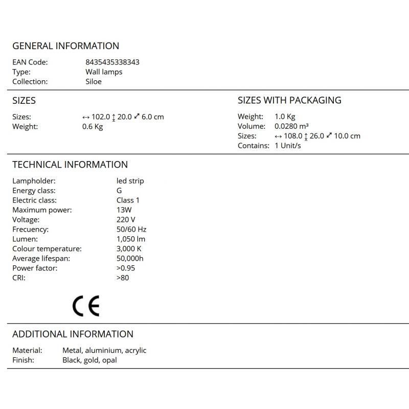 | Materiale | metal si aluminiu finisaj negru mat si auriu, difuzor silicon opal |