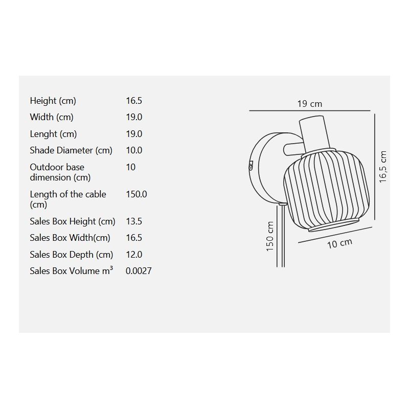 Dimensiuni | latime:19cm; abajur:10cm; inaltime:16,5cm |