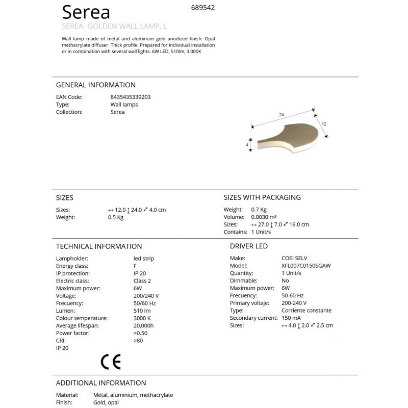 | Descriere | lampa de perete din metal si aluminiu cu finisaj auriu anodizat, difuzor metacrilat opal, profil normal, se poate monta individual sau în combinatie cu mai multe aplice de perete |