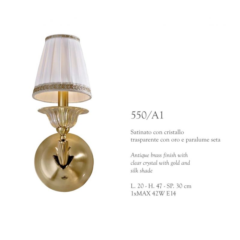 | Materiale | realizata manual din alama turnata sub presiune, o arta straveche a mesterilor italieni, sticla, abajur textil |