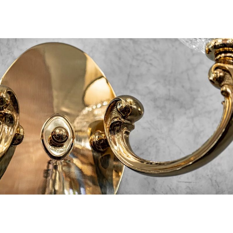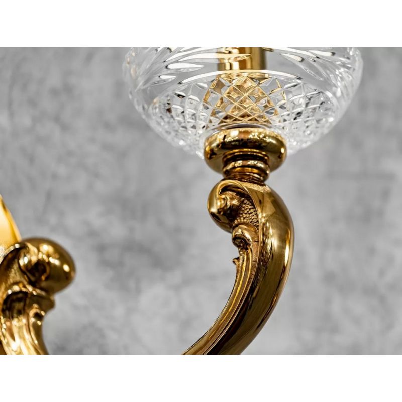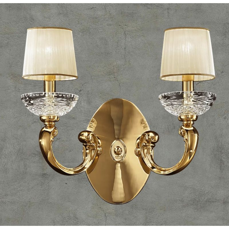 | Materiale | realizata manual din alama turnata sub presiune, o arta straveche a mesterilor italieni, cristal transparent, abajur plisat din organza crem |