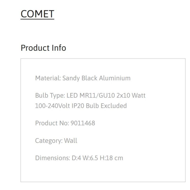 | Materiale | aluminiu negru (sandy black), lumina ambientala sus/jos |