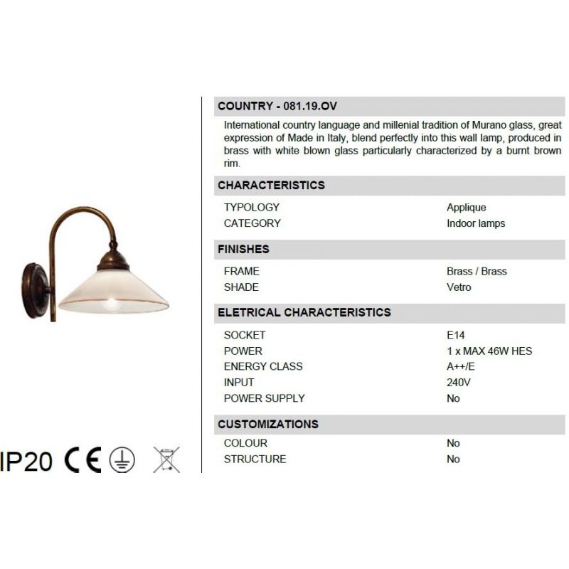 | Materiale | aplica cu abajur din sticla Murano si cadru din alama antichizata |