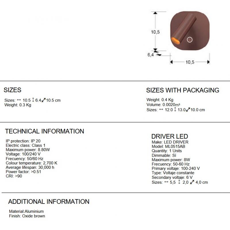 | Informatii produs: | aplica cu iluminare: lampă de citit de 2,8 W și iluminare de fundal de 6 W, ambele LED-uri CCT, cu control independent al tonului și intensității luminii prin buton tactil |