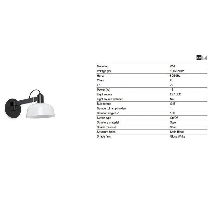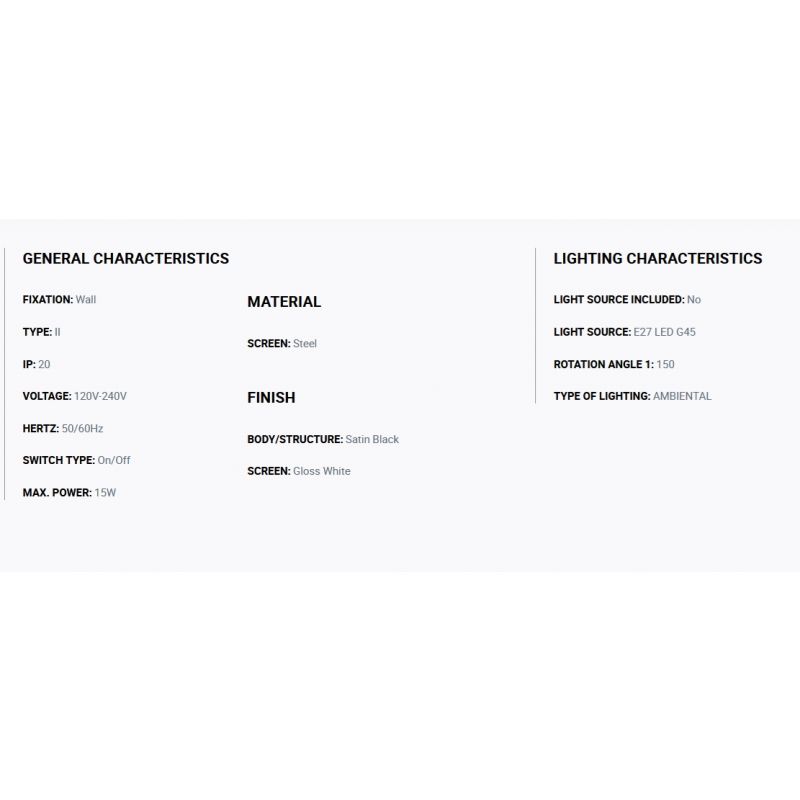 | Materiale | structura otel negru satin, abajur metal alb lucios |