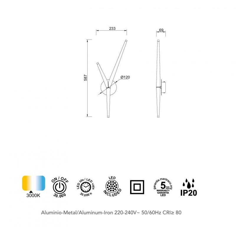 | Putere | LED integrat 5,5W, 3000K, 450lm |