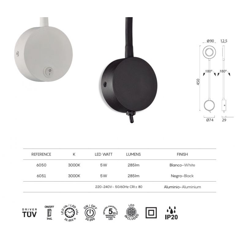 | Putere | 5 Watt LED integrat 285Lm, 3000K |