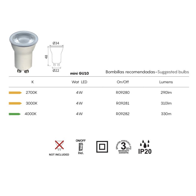 | Putere | 1x maxim 12 Watt bec Mini GU10 exclus din pret |