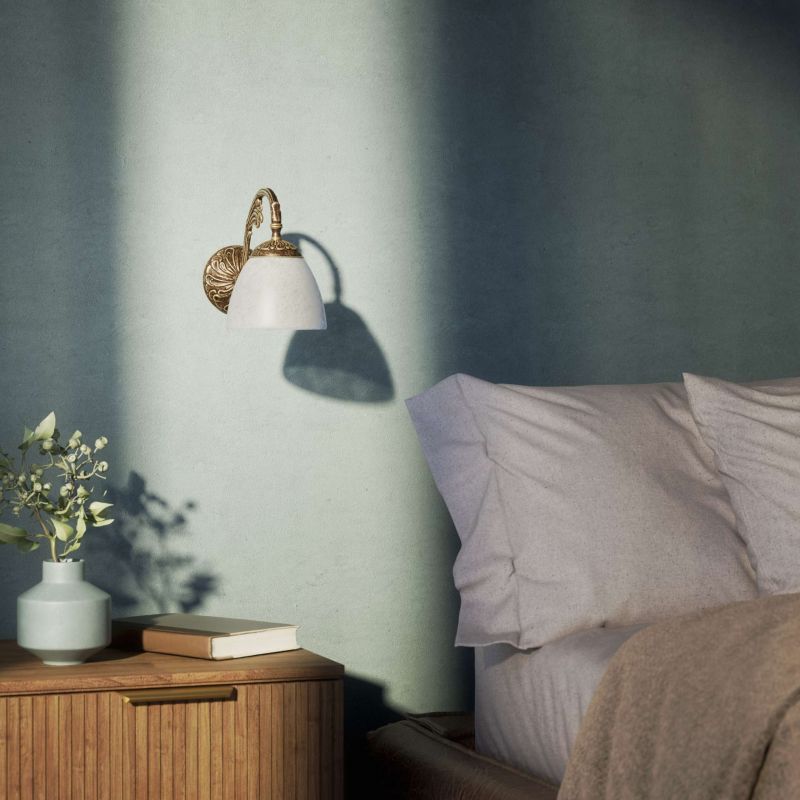 | Materiale | structura din alama disponibila in finisaj OBS ( Bronze Satin Brass) sau OAS (Antique Brass), abajur din sticla alba patata |