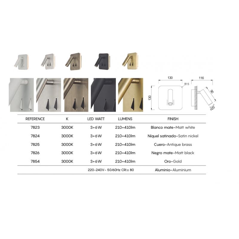 | Putere | LED integrat 3+6Watt, 210+410lm, 3000K |