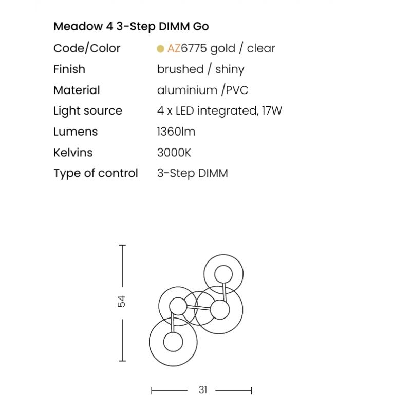 Aplica de perete LED MEADOW 4 3-STEP DIMM