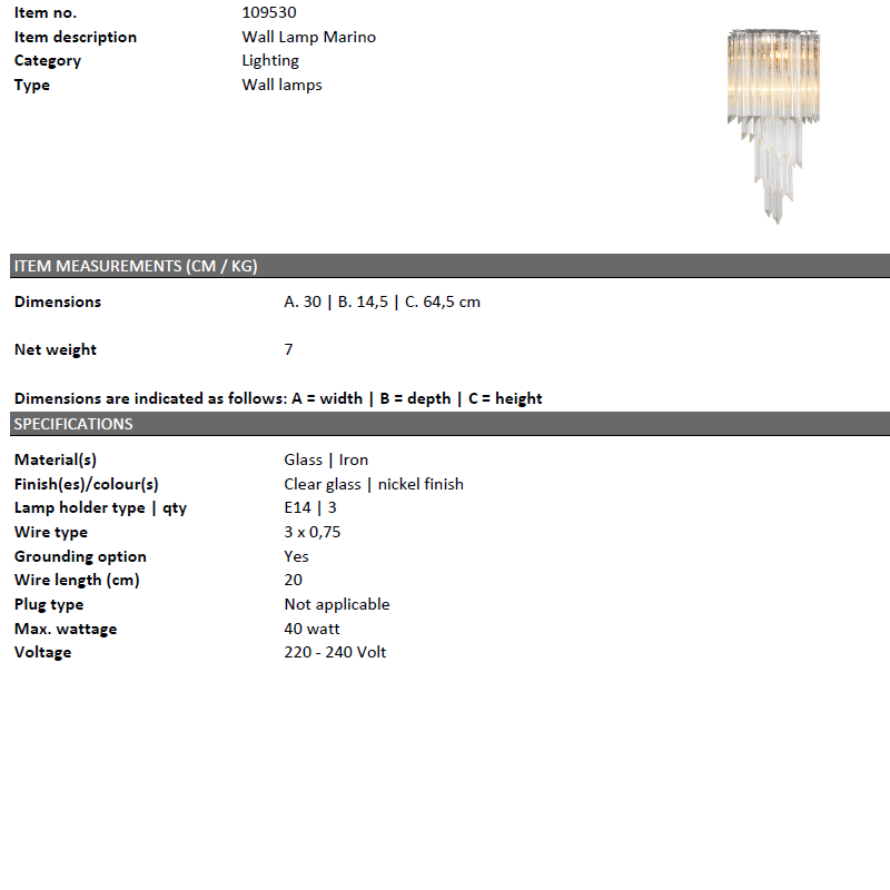 | Putere | 3x40Watt E14 exclus 220-240V,50-60Hz |