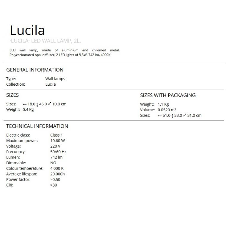 | Putere | 2x 5,3Watt bec LED integrat 2x 371Lm 4000K inclus in pret |