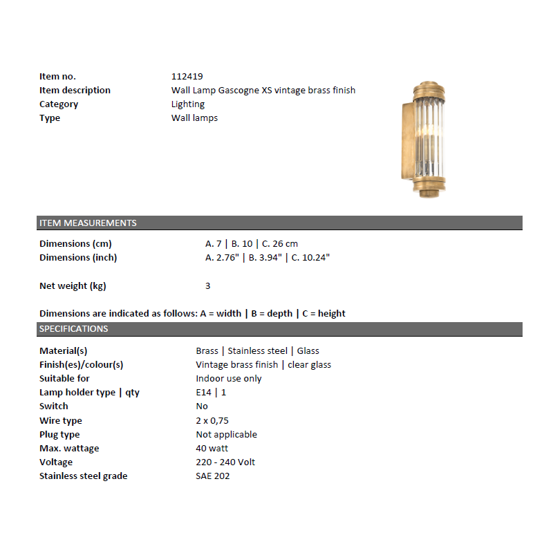 | Culoare | alama finisaj vintage/ transparent |