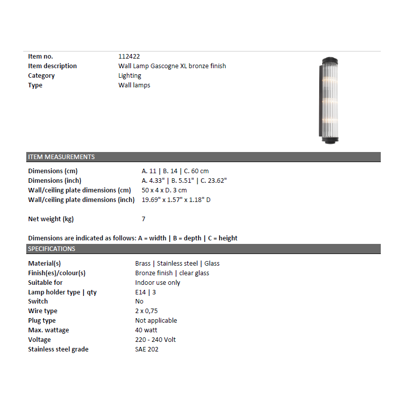 | Dimensiuni | latime:11cm; adancime:14cm; inaltime:60cm |