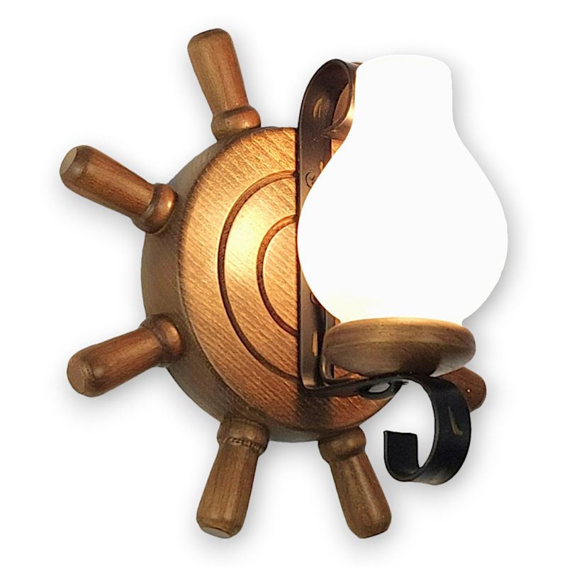 | Descriere | lemn de fag, fier forjat patinat si abajururi mate tip opait |