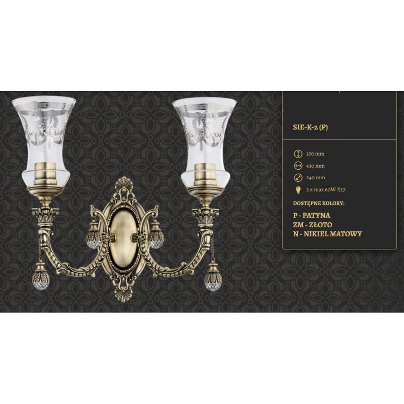 | Descriere | metal alama disponibil in 3 finisaje: alama patinata (P), alama finisaj nickel antic (N) sau alama satinata (ZM), cristale, abajur din sticla |