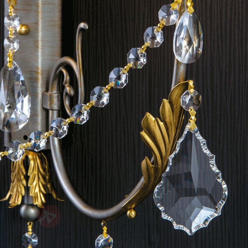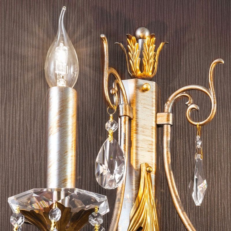 | Materiale | metal finisaj argintiu pictat manual cu nuante aurii, decorat cu frunze metalice, crystal plumb nobil |