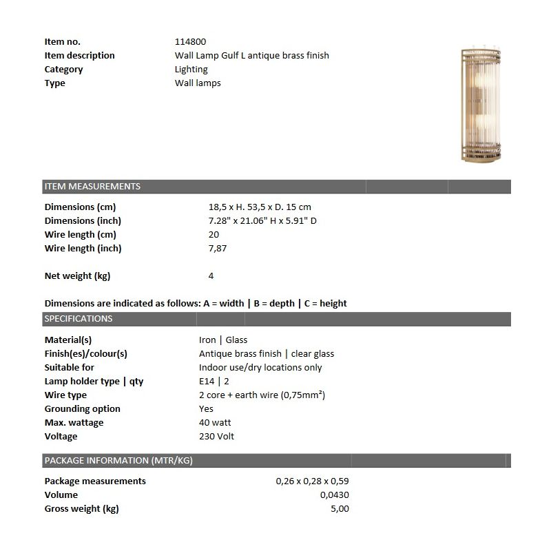 | Descriere | Otel finisaj de alama antic, abajur din sticla transparenta |