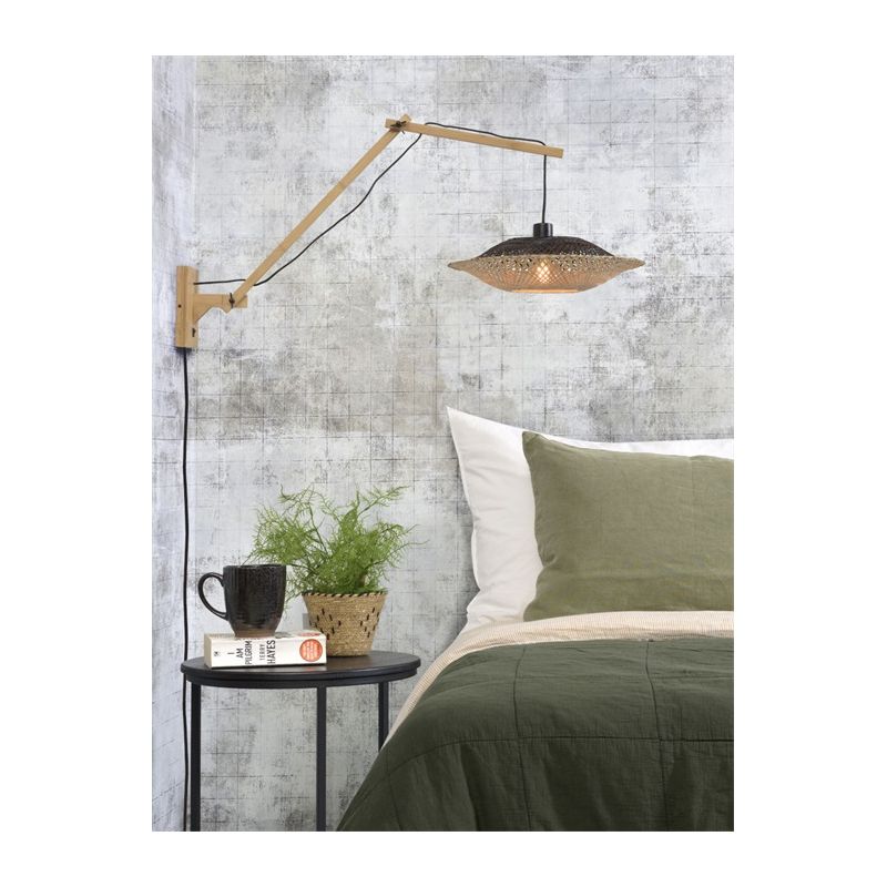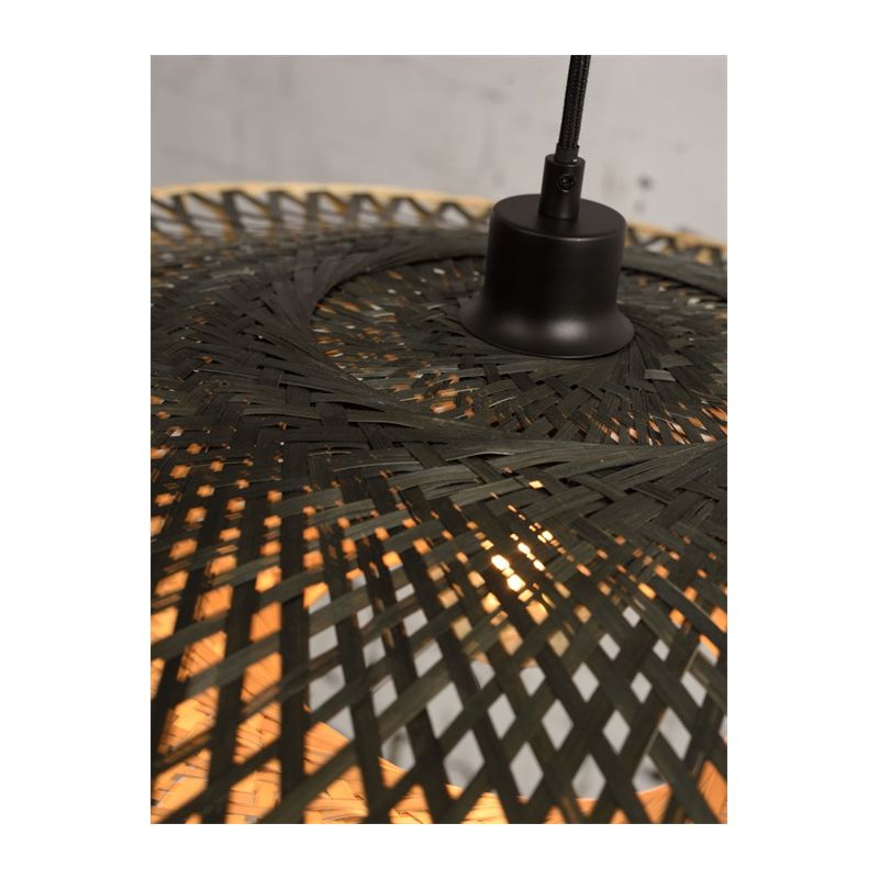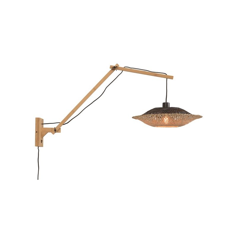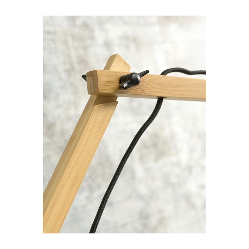 | Descriere | lemn de bambus finisaj natur, abajur din bambus impletit, o parte natur si o parte neagra, cablu textil 200cm, intrerupator pe baza |