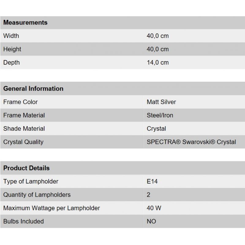 | Putere | 2x 40Watt bec E14 exclus din pret |
