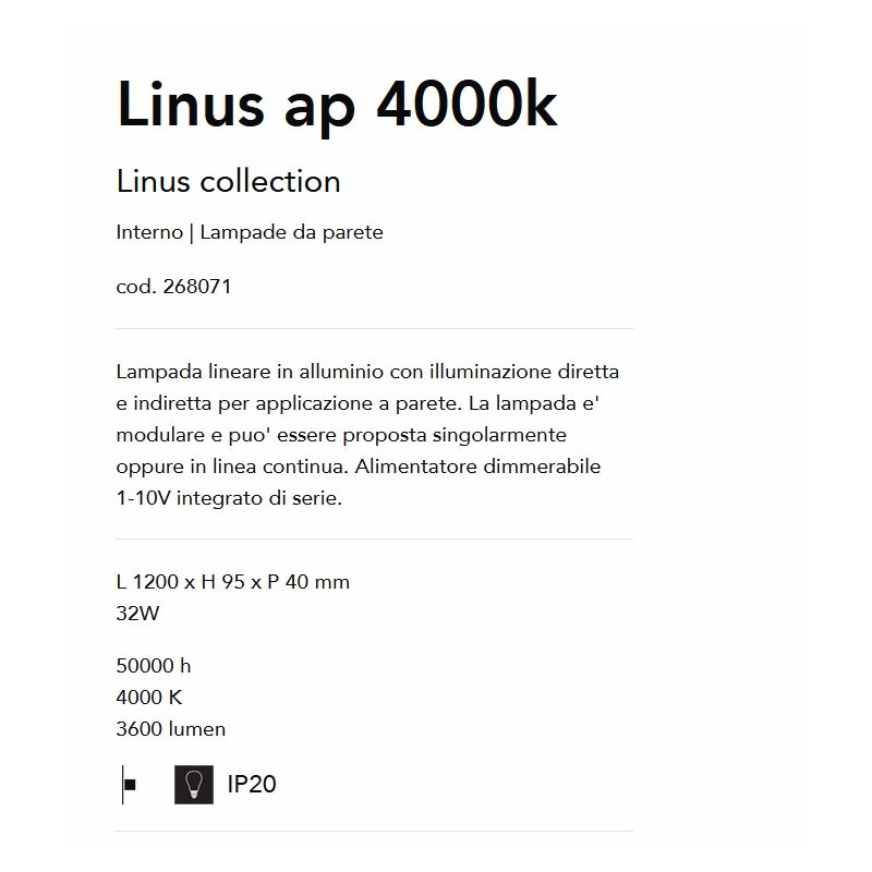 Informatii produs: | lampa liniara este modulară și poate fi utilizată individual sau în linie continuă cu conectorul optional 233666 (exclus din pret) |