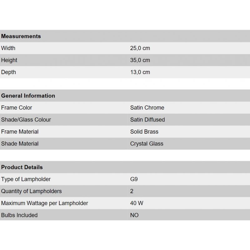 | Descriere | alama solida finisaj crom satin, abajur crystal glass satin difuz |