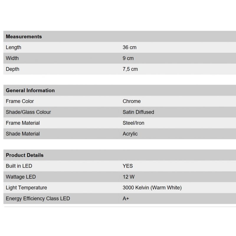 | Descriere | metal finisaj crom, difuzor acrilic satin difuz |