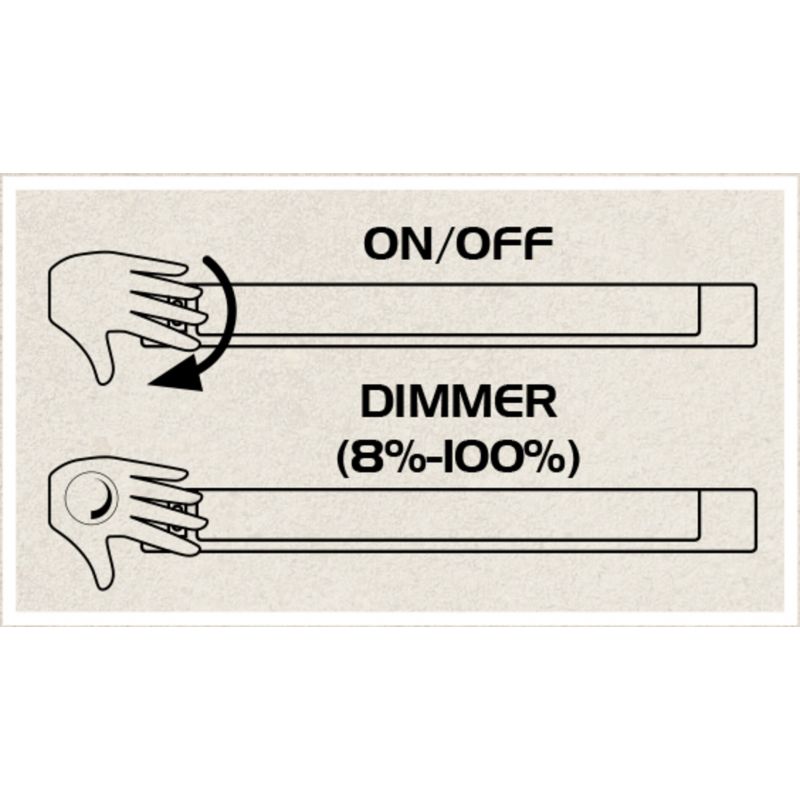 Lampa LED dispune și de funcții suplimentare: luminozitatea poate fi reglată în funcție de preferințe. Datorită tehnicii moderne a senzorului de reglare a luminozității este suficient dacă apropiem mâna de senzorul produsului, nu este nevoie să apăsăm pe butoane. Țineți mâna câteva secunde deasupra senzorului, iar produsul se aprinde și se stinge. Dacă doriți să reglați intensitatea luminoasă, treceți mâna deasupra senzorului, iar intensitatea luminoasă va scădea.
