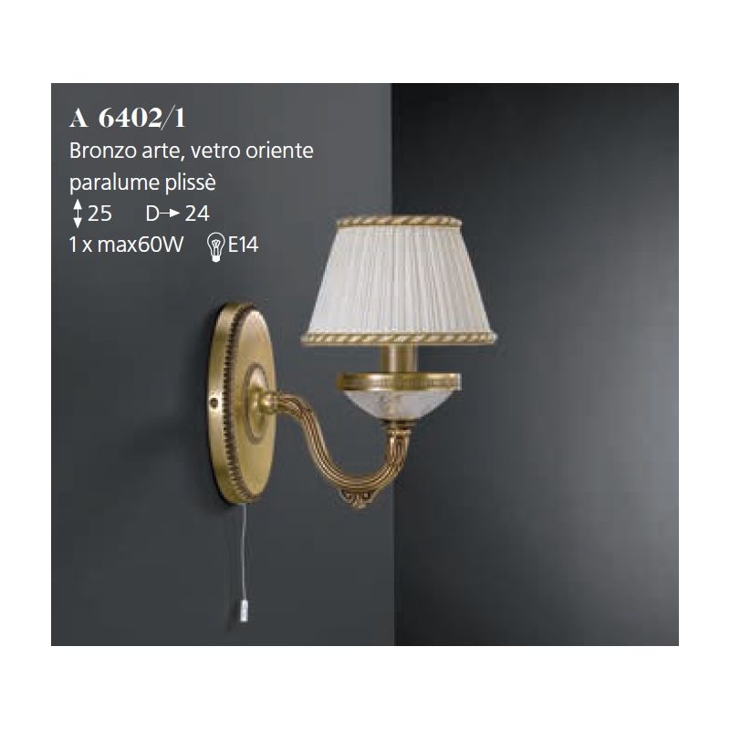 | Descriere | cadru din alama turnata finisaj bronz art, sticla satinata decorata, abajur textil fin plisat |