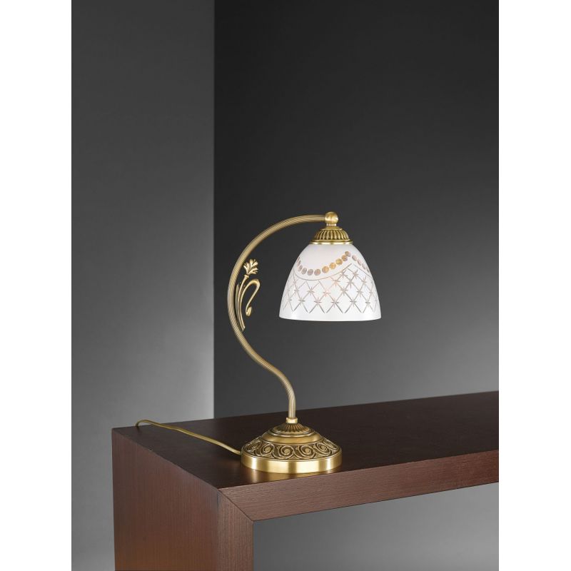 | Informatii produs: | Veioza realizata manual din alamă masivă si sticla suflata , încadrându-se armonios atât într-un decor clasic sau modern. |