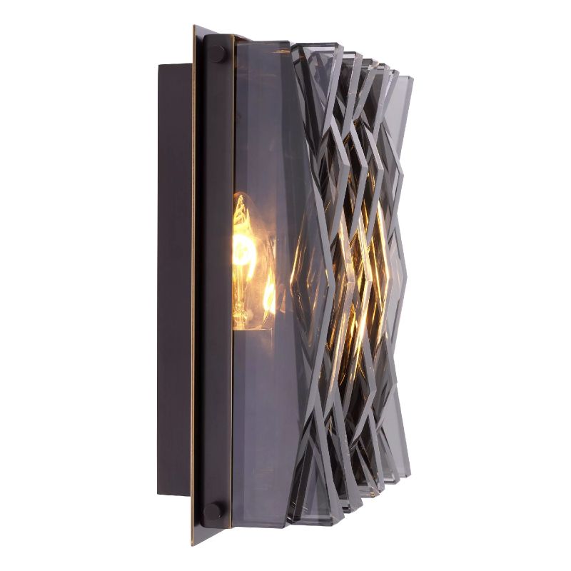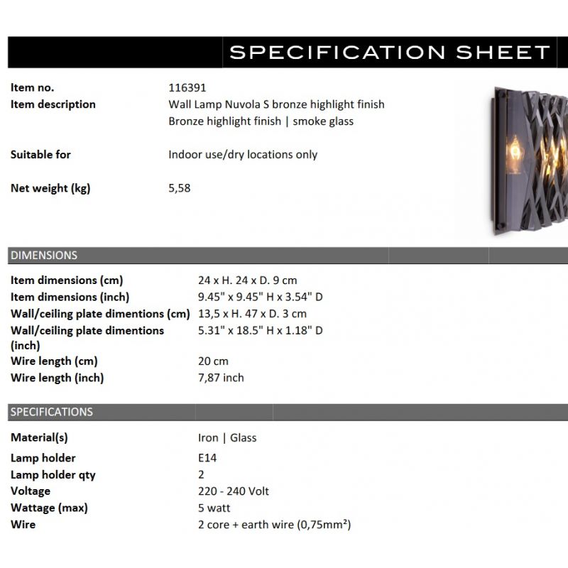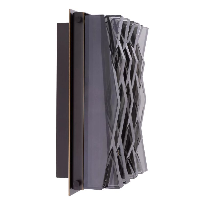 | Descriere | baza din metal finisaj bronz, plăcile groase de sticlă fumurie creează un model izbitor în relief cu linii geometrice |