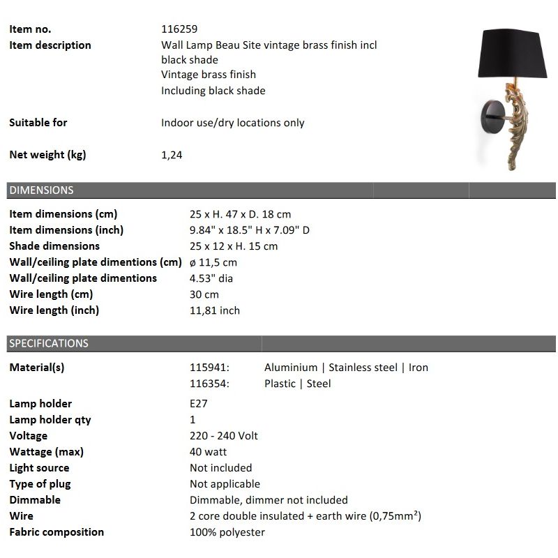 | Culoare | alama vintage, negru |
