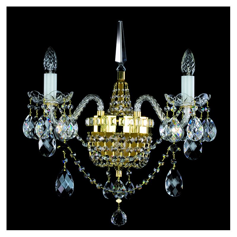 Aplica de cristal este decorată cu garnituri de cristal Crystal Exclusive. Componentele din cristal și sticlă și piesele metalice fine în finisaj auriu, argintiu sau alte suprafețe fac o combinație uimitoare. Lumina lustrei de cristal, combinată în special cu alte candelabre de cristal, este potrivită pentru orice interior, modern sau tradițional.