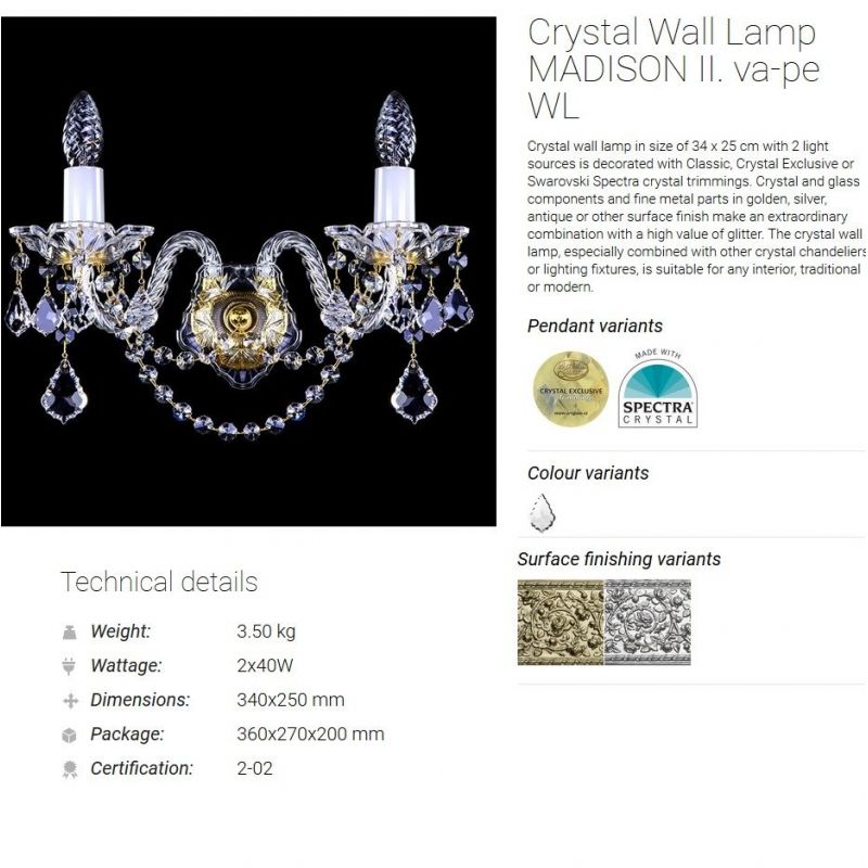 Cristalul utilizat are un conținut de până la 30% PbO, specific cristalului Bohemia, permițând realizarea unor forme variate de pandantive, inclusiv variante transparente sau colorate, în funcție de colecție. Structura metalică a corpurilor de iluminat este disponibilă, în funcție de model, în finisaje precum alamă auriu sau galvanizat argintiu.