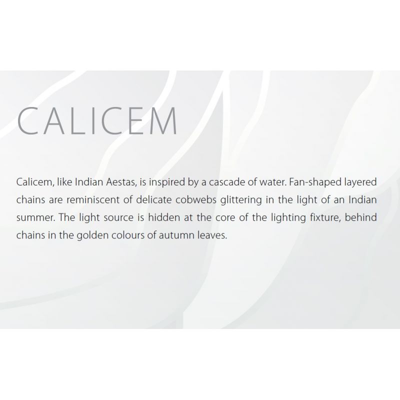 Calicem, este inspirat de o cascadă de apă. Lanțurile stratificate în formă de evantai amintesc de pânzele de păianjen delicate care sclipesc în lumina unei veri indiene. Sursa de lumină este ascunsă în centrul corpului de iluminat, în spatele lanțurilor în culorile aurii sau argintii ale frunzelor de toamnă.