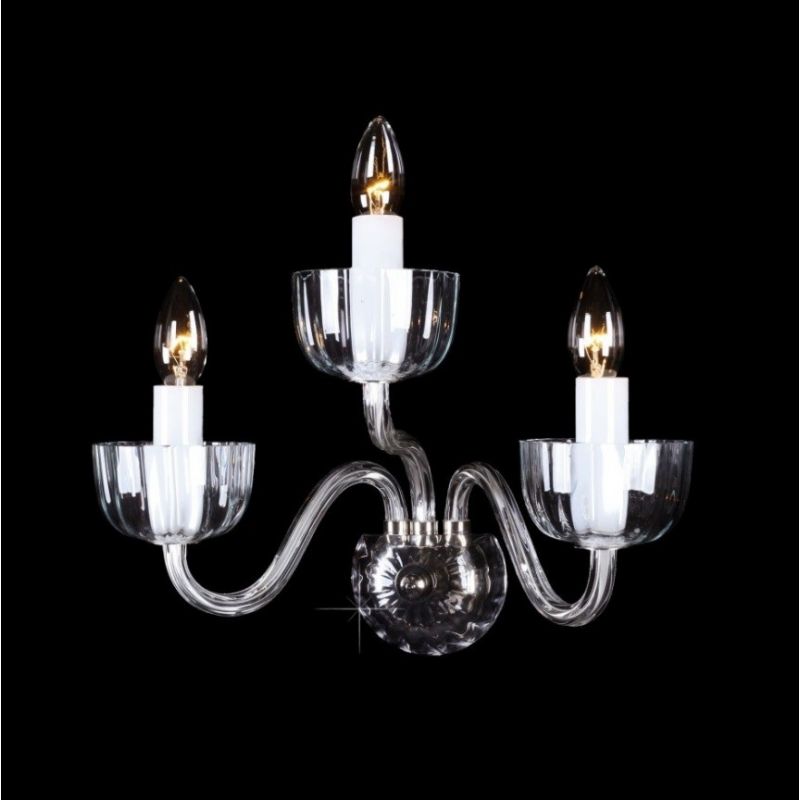 Aplica de perete eleganta cu brate din sticla. Componentele din cristal și sticlă și piesele metalice fine în finisaj auriu sau argintiu fac o combinație uimitoare. Lumina lustrei de cristal, combinată în special cu alte candelabre de cristal, este potrivită pentru orice interior, modern sau tradițional.