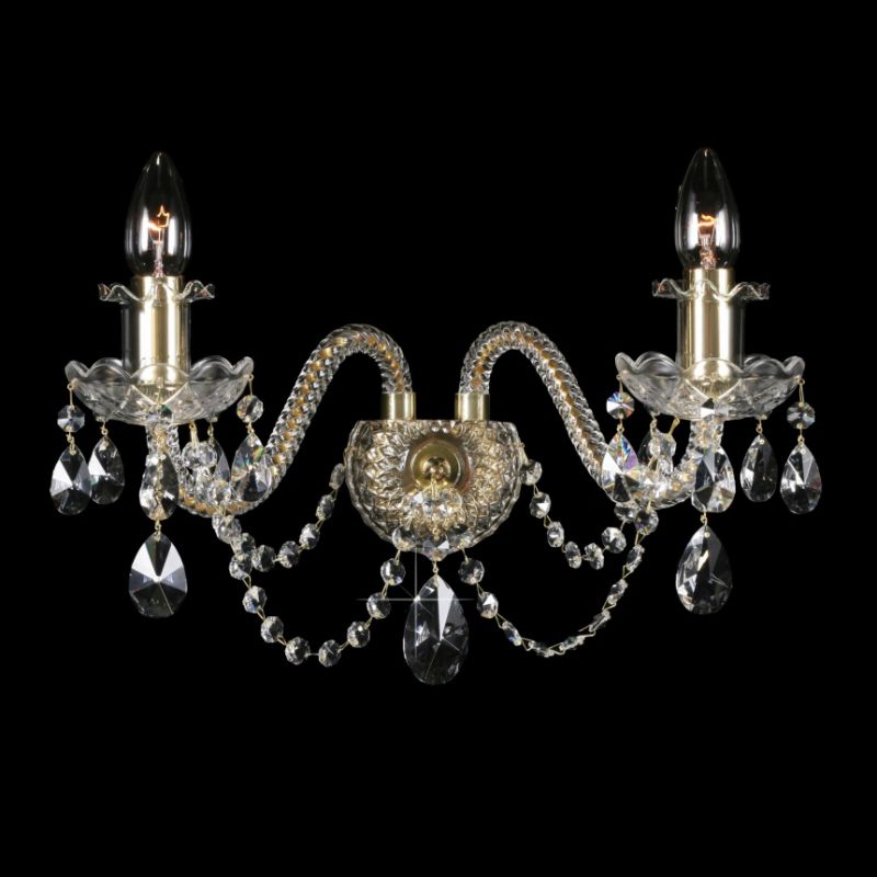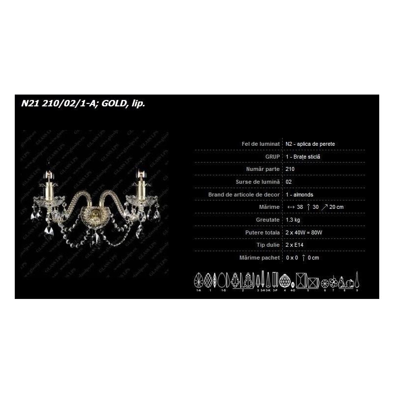 Aplica Cristal Bohemia cu garnituri de cristal Bohemia si brat din sticla. Componentele din cristal și sticlă și piesele metalice fine în finisaj auriu sau argintiu fac o combinație uimitoare. Lumina lustrei de cristal, combinată în special cu alte candelabre de cristal, este potrivită pentru orice interior, modern sau tradițional.