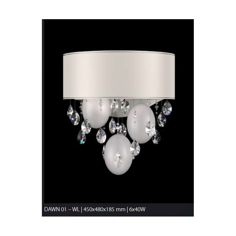 Componenta principală a gamei DAWN este sticla suflată, care are caracteristici culoare gradată, aceasta este combinată cu lanturi de cristale. Corpurile de iluminat prezentate pot fi adaptate în funcție de cerințele clientului și fezabilitatea tehnică.