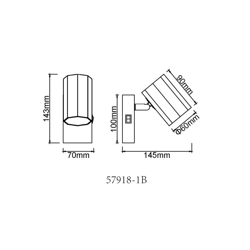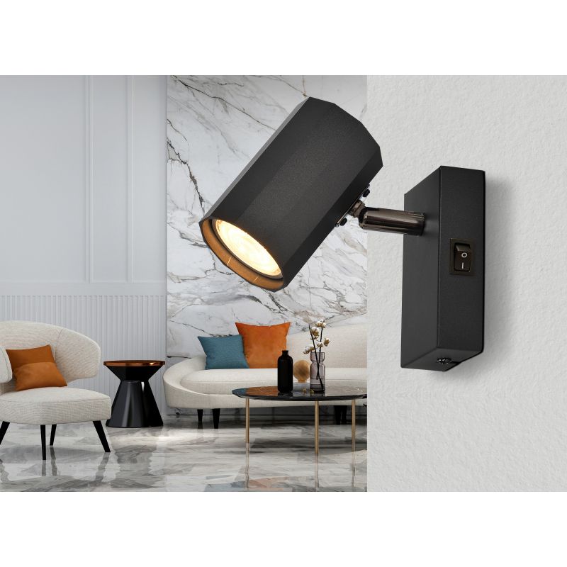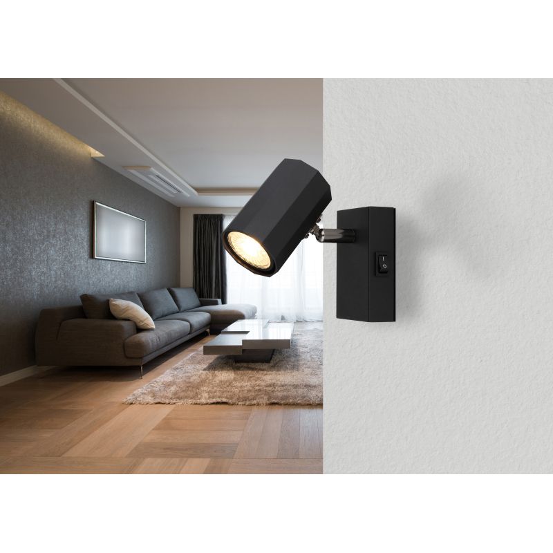 Materiale | metal negru mat, aluminiu negru mat, comutator aplicat pe baza |