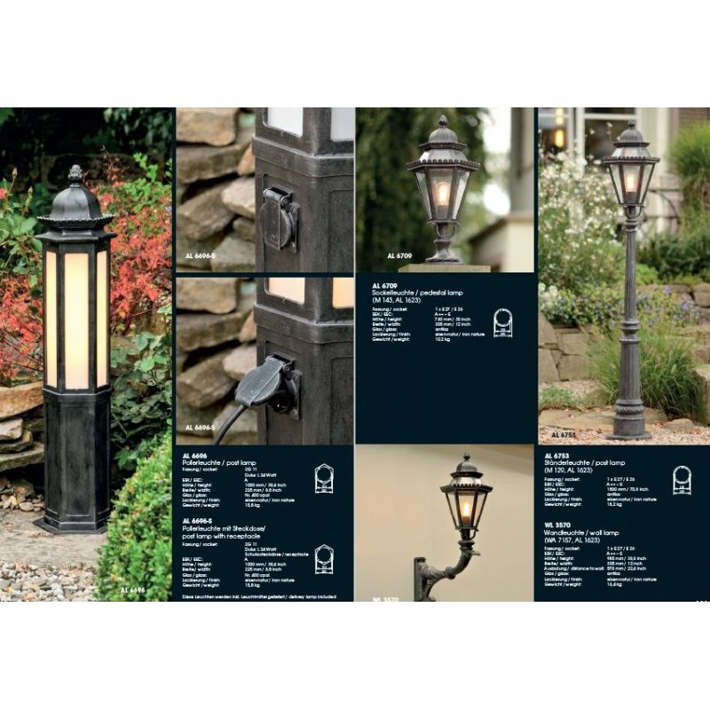 Aplica iluminat exterior design clasic cu detalii fine atent lucrate, iluminat exterior din fier forjat realizat manual dupa arta germana, lampa de calitate LUX marca Robers.